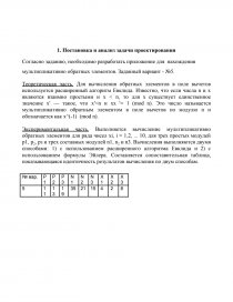 Экспериментальная часть. Выполняется вычисление мультипликативно обратных элементов для ряда чисел хi, i = 1,2, ... 10, для трех простых модулей р1, р2, рз и трех составных модулей n1, n2 и n3. Вычисления выполняются двумя способами: 1) с использованием расширенного алгоритма Евклида и 2) с использованием формулы Эйлера. Составляется сопоставительная таблица, показывающаяся идентичность результатов вычисления по двум способам.