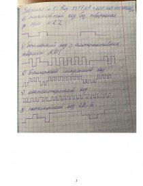 Завдання 1. Дана комбінація А (таблиця 3), представлена у шістнадцятковому коді. З таблиці виберіть код згідно варіанту. Переведіть код у двійкову систему числення. Наведіть осцилограми сигналів, що будуть отримані в результаті її кодування за допомогою: а) потенційного коду без повернення до нуля NRZ; б) біполярного коду з альтернативною інверсією AMI; в) біполярного імпульсного коду; г) манчестерського коду; д) потенційного коду 2В1Q. Порівняйте Отриманий результат за допомогою програми canal.exe. Вкажіть на переваги та недоліки кожного коду з відповідними поясненнями.