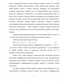 Интерполяция — построение кривой, точно проходящей через набор базовых точек. В простейшем случае интерполяция может быть реализована путем соединения базовых точек отрезками прямых линий, этот способ называется линейной интерполяцией. Такая кривая точно проходит через набор базовых точек и отлично подходит, например, для иллюстрации динамики курса валют. Однако, если этот набор базовых точек получен в результате некоторого эксперимента, то линейная интерполяция может не очень точно отражать поведение объекта эксперимента на интервалах между базовыми точками. Поэтому более приемлемой может быть интерполяция с помощью некоторой гладкой кривой. Критерием гладкости является существование производных функции, описывающей кривую. Какого порядка существует производная — такого порядка и гладкость. Обычно достаточно гладкой считается функция, если она имеет производную первого или второго порядка.