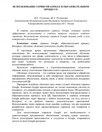 Ключевые слова: сервисы Google, образовательный процесс, Интернет, обучение, облачная технология, онлайн обучение.