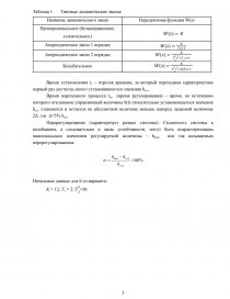 В таблице 1 приведены передаточные функции так называемых типовых динамических звеньев. Под типовым звеном понимают такое звено, которое описывается дифференциальным уравнением не выше второго порядка.