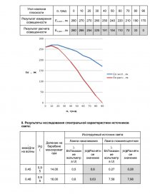 7. Результаты исследования освещенности наклонной плоскости для светильника «Универсал»: