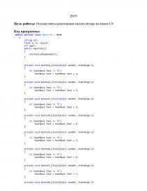Цель работы: Осуществить реализацию калькулятора на языке C#.