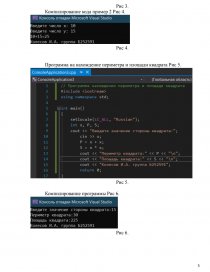 Программа на нахождение периметра и площади квадрата Рис 5.