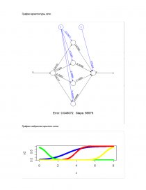 Данная архитектура не слишком, сложна для того, чтобы понять мысль взаимосвязей входных и выходных переменных. В ней используется один скрытый слой и 4 нейрона в этом слое.