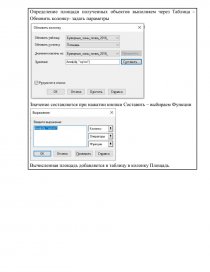 Определение площади полученных объектов выполняем через Таблица – Обновить колонку- задать параметры [pic 8] Значение составляется при нажатии кнопки Составить – выбираем Функции [pic 9] Вычисленная площадь добавляется в таблицу в колонку Площадь. [pic 10] |