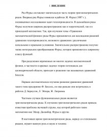 Ряд Фурье составляет значительную часть теории тригонометрических рядов. Впервые ряд Фурье появился в работах Ж. Фурье (1807 г.), посвященных исследованию задач теплопроводности. В дальнейшем ряды Фурье получили широкое распространение как в теоретической, так и в прикладной математики. Так, при изучении темы «Уравнения математической физики» ряды Фурье применяются для нахождения решений уравнения теплопроводности, волнового уравнения с различными начальными и краевыми условиями. Значительное распространение получил также интегральное преобразование Фурье, которое применяется к широкому классу функций.