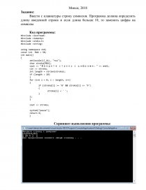 Ввести с клавиатуры строку символов. Программа должна определить длину введенной строки и если длина больше 10, то заменить цифры на символы