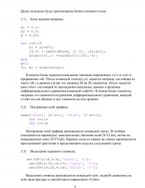 Основной программный код (представлен с комментариями далее) содержит в себе заданные начальные значения, задание нулевой матрицы, численное решение дифференциального уравнения с помощью функции «ode45» из файла со вспомогательным кодом построение фигуры в осях и вставку в оси матрицы из решений уравнения.