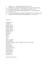 Компілятор розроблений в середовищі програмування Borland C/C++ на мові С, та поданий у пояснювальній записці, а також в електронному варіанті. В пояснювальній записці подано огляд існуючих методів розробки компіляторів, детальний опис мови, а також описано процес розробки програми компілятора на рівні блок-схем і тексту програми. В додатку міститься текст компілятора, а також результати тестування програми.