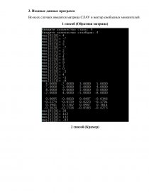 Во всех случаях вводится матрица СЛАУ и вектор свободных множителей.