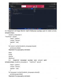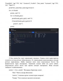 [pic 4]40. Сөздіктегі мәнді өзгерту. Ол үшін сөздік атын және квадрат жақшалар ішіндегі кілтті көрсетіп, сонымен байланыста болатын мәнді енгізу керек. Мысалы: