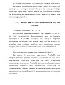 Бұл тарауда біз қосымшаны қарастырамыз PLAZA.KZ, онда интернет-дүкендерге арналған стандартты талаптар бар. Біз оның негізгі функцияларын, ұсынылатын қызметтерді және сатып алушылардың мүмкіндіктерін қарастырамыз. PLAZA.KZ өнім санаттары бойынша ыңғайлы навигацияны қамтамасыз етеді, егжей-тегжейлі сипаттамалар мен тұтынушылардың пікірлерін ұсынады. Біз оны басқа интернет-дүкендермен салыстырамыз және оның бәсекелестік артықшылықтары мен кемшіліктерін анықтаймыз.
