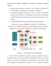 Відповідно до підходоу MapReduce (на рисунку 2.1) обробка даних складається з двох кроків: Map і Reduce. На кроці Map виконується попередня обробка даних, яка здійснюється паралельно на різних вузлах кластера. [pic 1]