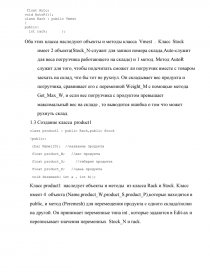 Тема курсовой работы «Учет товаров на складе». Была поставлена задача: составить программу классами, которая, по товару (наименование, вес, цена, габариты), складу (номер, размер, ограничение по весу), стеллажу (номер, размер, ограничение по весу), полке ( номер, размер, ограничение по весу)
