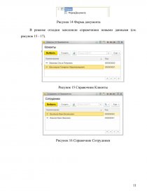 - Справочники – находятся информация о клиентах, сотрудниках и т. д.