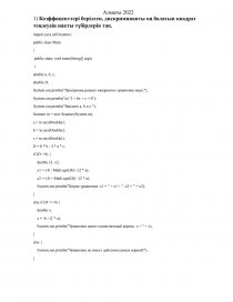 1) Коэффиценттері берілген, дискриминанты оң болатын квадрат теңдеудің нақты түбірлерін тап.