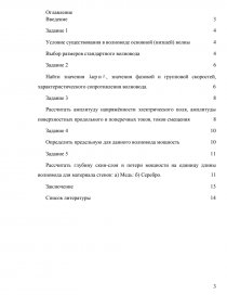 - Рассчитать амплитуду напряжённости электрического поля, амплитуды поверхностных продольного и поперечных токов, токов смещения.