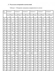 Таблица 1 - Измерение диаграммы направленности антенн