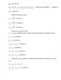 Здесь – собственные сопротивления первого, второго и третьего контуров, равные сумме сопротивлений соответствующих контуров, а – взаимные сопротивления контуров. Вычислим данные сопротивления:[pic 32][pic 33]