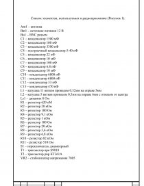Список элементов, используемых в радиоприемнике (Рисунок 1):