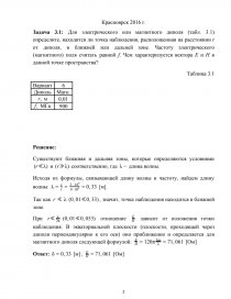 Задача 3.1: Для электрического или магнитного диполя (табл. 3.1) определите, находится ли точка наблюдения, расположенная на расстоянии r от диполя, в ближней или дальней зоне. Частоту электрического (магнитного) поля считать равной f. Чем характеризуется вектора E и H в данной точке пространства?