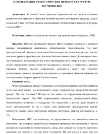 ИСПОЛЬЗОВАНИЕ СТАТИСТИЧЕСКИХ МЕТОДОВ В СТРУКТУРЕ ИЗУЧЕНИЯ ВВП