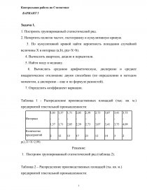 Таблица 1 - Распределение производственных площадей (тыс. кв. м.) предприятий текстильной промышленности: