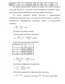 Провести аналитическую группировку рабочих по стажу, выделив 3 группы с равными интервалами. По каждой группе и в целом вычислить число рабочих, средний стаж и среднемесячную заработную плату. Вычислить общую и межгрупповую дисперсию и эмпирическое корреляционное отношение, сделать вывод о характере изучаемой зависимости. Результаты представить в таблице. Для изучения корреляционно регрессионным методом, вычислить параметры линейного уравнения регрессии у = а - в*х и раскрыть аналитическое значение коэффициента регрессии: определить коэффициент парной линейной корреляции, коэффициент детерминации: сделать выводы, расчет представить в виде таблицы.