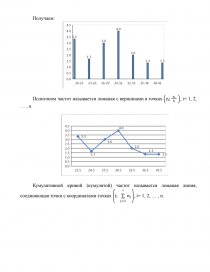 Построить гистограмму, полигон и кумуляту частот полученного группированного ряда.