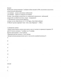 Необходимо проанализировать 2 выборки (объём каждой n»100), полученные в результате статистических наблюдений.