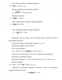 Отже, медіанний інтервал (f '' ≥ 30): 15.1-17.74 тис. шт. (f ''= 50 тис. шт.).