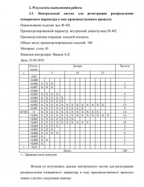 2.1. Задание: Деталь обрабатывают на станке и в результате замеров получены представленные в исходных данных размеры внутреннего диаметра вала. Нормативно-технической документацией предусмотрен допуск равный 0,750 ± 0,01 мм. Разработать контрольный листок регистрации распределения измеряемого параметра и контрольный листок регистрации данных.
