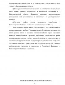 Во второй главе, представлена расчетно-статистическая часть, в которой собраны статистические данные, проведен анализ занятости и безработицы в России и в Калининградской области.