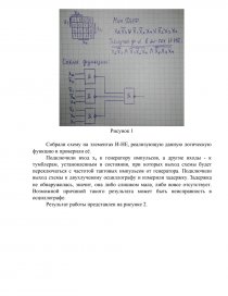5. Один из четырёх входов схемы подключить к генератору импульсов, а другие входы тумблерами установить в состояния, при которых выход схемы будет переключаться с частотой тактовых сигналов от генератора. С помощью двулучевого осциллографа измерить время задержки выходного сигнала относительно входного сигнала.