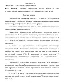 Цель работы: получение практических навыков расчета по теме: «Параметрические и компенсационные стабилизаторы напряжения (СН)».