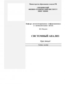 Мякушко В.В. Системный анализ. Курс лекций. - Снежинск: СФТИ НИЯУ МИФИ, 2016. – 76 с.