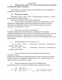 Лабораторная работа № 6. Исследование различных режимов в однородной линии с потерями