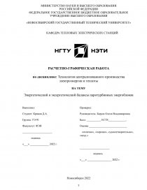 В данной работе будет проведен расчет принципиальной тепловой схемы (с деаэраторным подогревом питательной воды) теплофикационного энергоблока на основе метода энергетического и эксергетического балансов. В ходе расчета необходимо определить энергетические и эксергетические потери при работе энергоблока на конденсационном и теплофикационном режимах, сравнить энергетические и эксергетические показатели эффективности, по результатам расчетов построить диаграммы энергетических и эксергетических балансов.