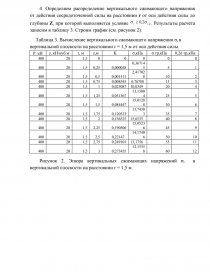 3. Определяем распределение вертикального сжимающего напряжения от действия сосредоточенной силы на глубине Z от оси действия силы до r, при которой выполняется условие [pic 12]. Результаты расчёта заносим в таблицу 2. Строим график (см. рисунок 1).