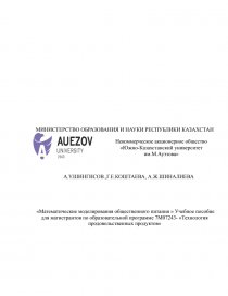«Математические моделирования общественного питания » Учебное пособие для магистрантов по образовательной программе 7М07243- «Технология продовольственных продуктов»