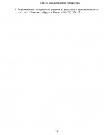 Рекомендуемая литература: Гидромеханика: методические указания по выполнению курсового проекта / сост.: А.Н. Шевченко. – Иркутск: Изд-во ИРНИТУ, 2020. 25 с