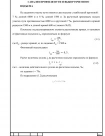 7 ‰ длиной 6000 м и 8 ‰ длиной 1500 м. За расчетный принимаем подъем участка пути протяженностью 6000 м и крутизной 7 ‰, расположенный в кривой радиусом 1500 м и длиной кривой 600 м (элемент №32).