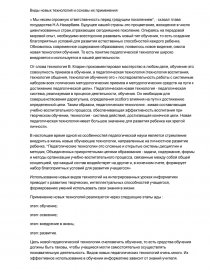 Цель новой педагогической технологии-очеловечить обучение, то есть средства обучения должны быть таковы, чтобы учащиеся могли самостоятельно осуществлять познавательную деятельность. Видов новых педагогических технологий очень много. Их эффективное использование в обучении информатике зависит от знаний учителя.