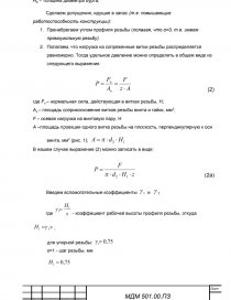 - Полагаем, что нагрузка на сопряженные витки резьбы распределяется равномерно. Тогда удельное давление можно определить в общем виде из следующего выражения: