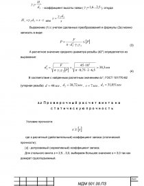 - Определение диаметра бурта гайки (проектный расчет) 12