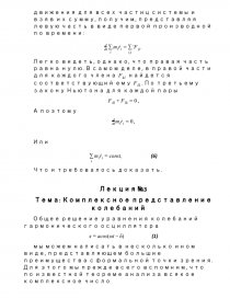 В основе классической механики лежат ньютоновы «аксиомы, или законы движения». Математическая формулировка в виде уравнений движения вытекает, как известно, из второго закона, согласно которому производная по времени от количества движения равна приложенной силе. Для одной частицы этот закон дает три дифференциальных уравнения :