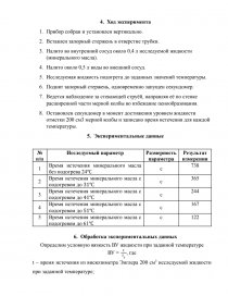 - Остановлен секундомер в момент достижения уровнем жидкости отметки 200 см3 мерной колбы и записано время истечения для каждой температуры.