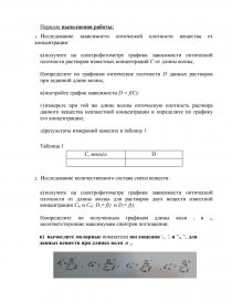 - изучение принципа действия спектрофотометра, исследование зависимости оптической плотности растворов от концентрации и проведение количественного спектрофотометрического анализа смеси веществ.