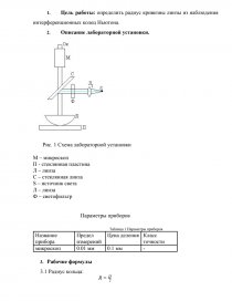 [pic 1] Рис. 1 Схема лабораторной установки М – микроскоп П - стеклянная пластина Л – линза С – стеклянная линза S – источник света Л – линза Ф – светофильтр Параметры приборов Таблица 1 Параметры приборов